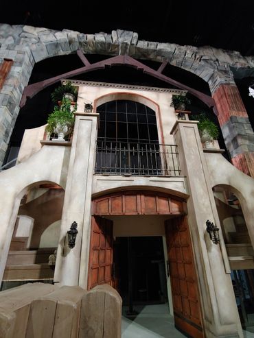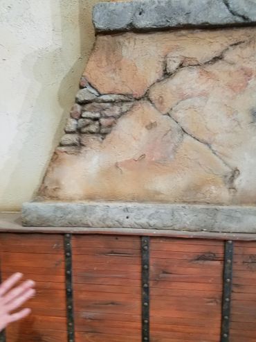 The concrete columns and decor art were faux stoned and shadowed for depth, enhancing the architecture.